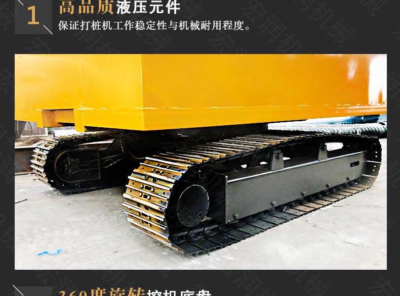 履帶打樁機采用履帶移動形式,具有移動靈活就位方便,此外電器液壓全部采用集中控制,操作方便,減少了工人的勞動強度。
